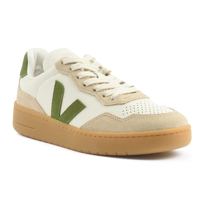 The Low sneakers Veja V-90 are trendy shoes designed for the days to come. These shoes based on the Low sneakers style are made with a leather and suede upper and upper, providing a stylish and sophisticated look. The lining is made of textile, ensuring optimal comfort while keeping a sober appearance. The insoles are also made of textile and removable, thus facilitating the maintenance and maintenance of shoes. The outsoles are made from EVA and wild Amazon rubber, providing a solid foundation for everyday activities. Details of these shoes include perforations for better ventilation, cream laces that go through fabric eyelets and beige velvet leather stitching around the middle part and heel. The ecru color of the Low sneakers Veja V-90 is complemented by green accents, adding a touch of nature and style. The rubber outsole is tan with seams visible along the perimeter. A large olive green "V" logo adorns the side panel, adding a touch of personality to these shoes. Designed for everyday activities, the Low sneakers Veja V-90 combines fashion, comfort and versatility. They are ideal for outings, hikes or simply for weekdays. The Low sneakers Veja V-90 are a great option for those looking to stand out while remaining comfortable and convenient. -