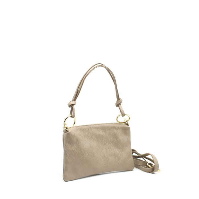 This Vimoda 390450 shoulder bag combines elegance and modernity to sublimate your everyday outfits. Designed in taupe grained leather, this timeless model stands out for its sleek design, marked by sleek lines and rounded contours that give it an allure that is both chic and timeless. Two golden metal rings, attached to the upper corners of a handle knotted with refinement, add a touch of originality to its aesthetics. Practical and versatile, this bag perfectly fits your office, outing or travel needs. Its secure zipper, located on the upper edge, guarantees the protection of your belongings, while a detachable grained leather strap, matched to the body of the bag and closed by another golden clasp, offers a comfortable alternative for a crossbody port. The interior, lined with cotton, ensures a soft and protective hold for your objects, while strengthening the durability of the bag. Ideal for those looking for an accessory that is both functional and stylish, this Vimoda model embodies the perfect combination of practicality and sophistication, for everyday use or more formal occasions. -