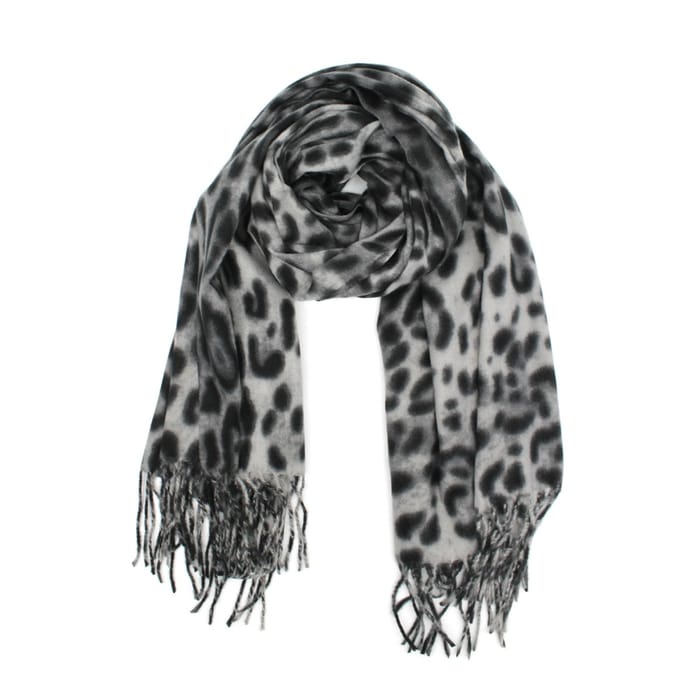 The Etole W's ETOLE from the brand Vimoda embodies a perfect blend of elegance and practicality. Crafted in a soft, warm material, it offers optimal comfort while bringing a touch of stylish elegance. Its stole design, decorated with a leopard pattern with shades of black and grey, is an essential accessory for the winter. The fringed ends add a distinct elegance, while its rolled shape enhances its modern aesthetic. Ideal to complete an outfit in fashion or for protection against low weather, this stole is a warm and stylish ally on a daily basis. -