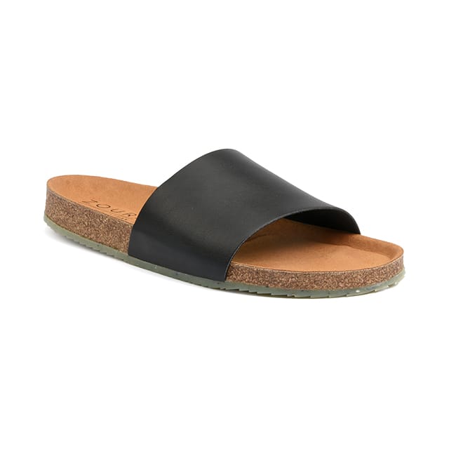 Here is the product description for the catalog: The Zouri Wave are casual and comfortable mules designed for summer outings or for your daily life. Their mule style is elegant and simple, with a corn leather top that adds a natural touch to your look. Corn leather is hard and durable, but also flexible and comfortable for feet. The insole is made of textile, which guarantees soft contact and optimal ventilation for the feet. The outsole is made of recycled plastic, which is an eco-friendly and sustainable option. The Zouri Wave are available in black, a neutral color that suits all looks. They are ideal for outings, but also for your daily life, because they are light and comfortable for the feet. The details of the corn leather mule are visible on the outside, which adds a personal touch to your look. The logo of the brand "Zouri" is embossed on the insole, near the back of the heel. The Zouri Wave are a great option for those looking for a little comfort and style in their daily lives. -